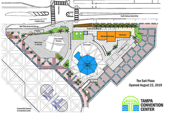 The space is located next to Big Ray’s Fish Camp Riverwalk restaurant & The Sail bar, and includes a large sail shade representing the sails of a ship, air-conditioned restrooms and adjacent boat docks that house the Pirate Water Taxi and several other boating companies for your guests to enjoy.
