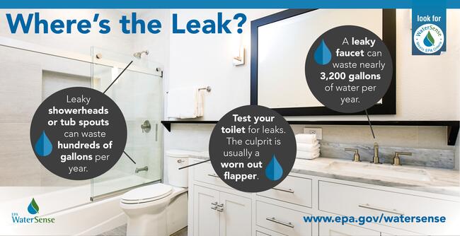 Water leaks around the home can waste a large amount of water and have a big impact on your utility bill. Knowing where to look for leaks can help reduce water waste and your utility bill.