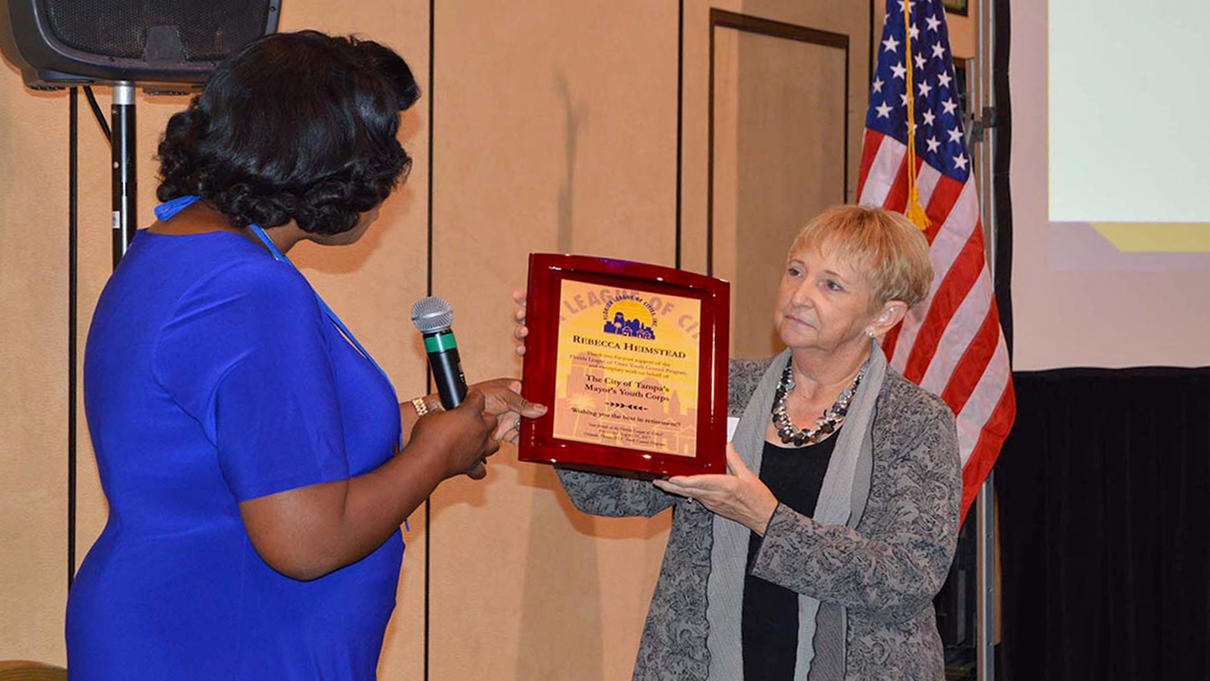 Ms. Rebecca Heimstead, MYC coordinator (2004-2017), being honored for her vital role within city government at Florida League of Cities