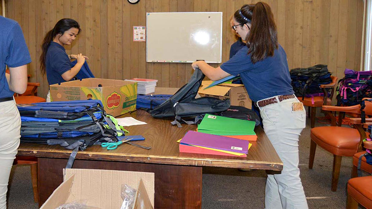 Preparing backpacks for the children at Village Presbyterian Church Food Pantry